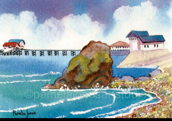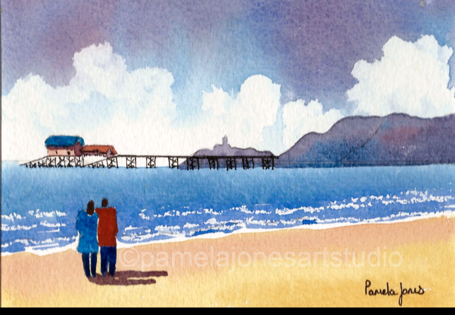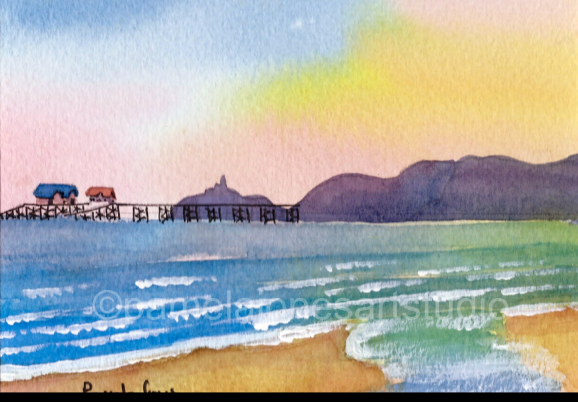 An Original Watercolour :: Mumbles Pier, Swansea Bay, South Wales NEW Size 9 ins x 7 ins including 1 ins cream mount. Chose Framed or Unframed from the options below! Please select options from the drop down menu below