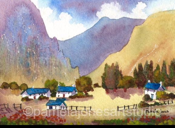An Original Watercolour :: Cottage in Welsh Countryside NEW Size 9 ins x 7 ins including 1 ins cream mount. Chose Framed or Unframed from the options below! Please select options from the drop down menu below