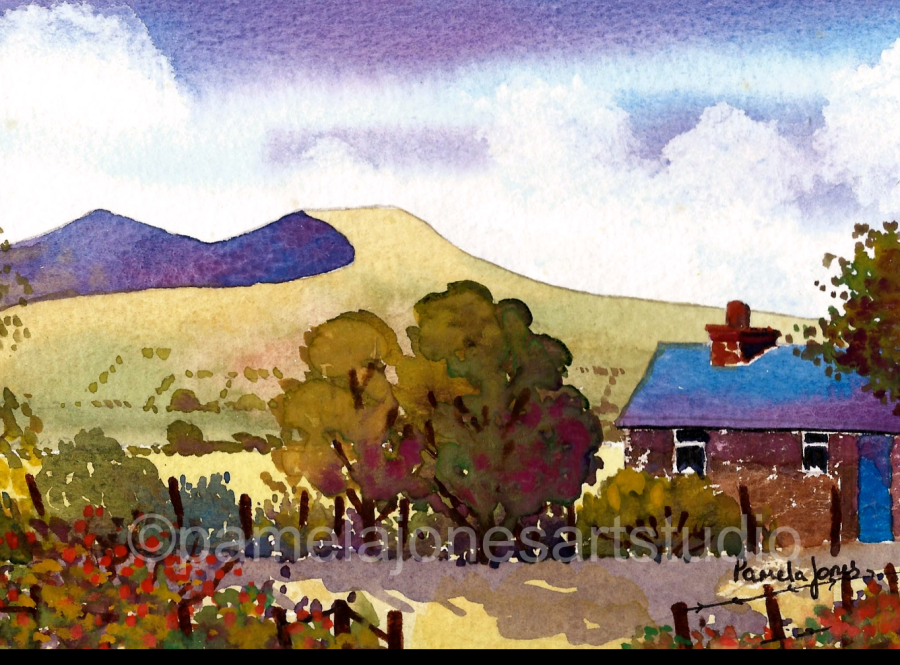 An Original Watercolour :: Hillside Cottage, In The Brecon Beacons, South NEW Size 8 x 6 ins including 1 ins cream mount. Chose Framed or Unframed from the options below! Please select options from the drop down menu below