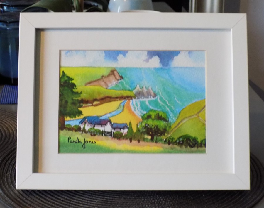 An Original Watercolour :: Three Cliffs Bay, Gower Peninsula, South Wales NEW Sold Framed in white wood 9.5 x 7.5'' Frame Please select options from the drop down menu below