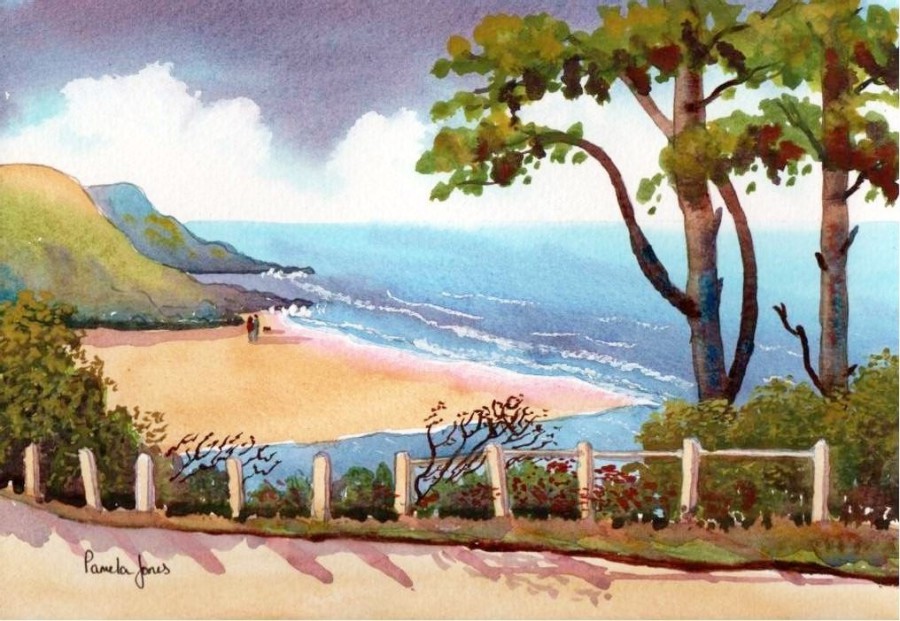 Watercolour print :: Caswell Bay, Gower, South Wales NEW 20 ins x 16 ins including a cream mount. Sold Unframed or Framed in light oak frame....... Chose option from drop down menu below